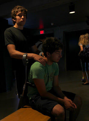 Although I enjoyed observing the marine life, I took even more pleasure from watching the boys interact. It is not often these days that they spend time with each other absent the presence of their friends or electronic entertainment. Kyle spent a large part of the weekend working and is tired and hungry. Both boys required feeding before and after the aquarium visit. We ate at Quincy Market and lingered to enjoy a street artist.
