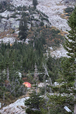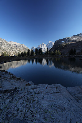 When we reached the North Fork we made camp in one of the established campsites, took on a little food, and rested for a few moments before continuing on to Solitude Lake. To this point, Jeanine has alternatively referred to our planned destination as Sacrifice Lake or Suicide Lake, clearly reflecting a perspective distorted by her fear of bears and/or the weight of her pack. We set out at 4 PM to complete the last 4 miles of the day’s hiking with little more than our water and a camera making the final ascent to Lake Solitude much more agreeable.