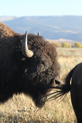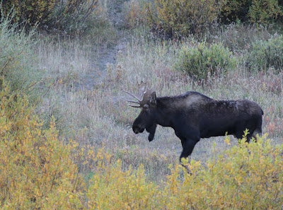 Comfortably settled in our cabin, we ventured out to the Antelope Flats area. It was not long before we found a herd of bison which eventually surrounded our rental car as they traversed the road were on. They were feet from the car. Shortly after this encounter, we located a herd of Pronghorn and finally as the light began to wane we spotted our first moose.