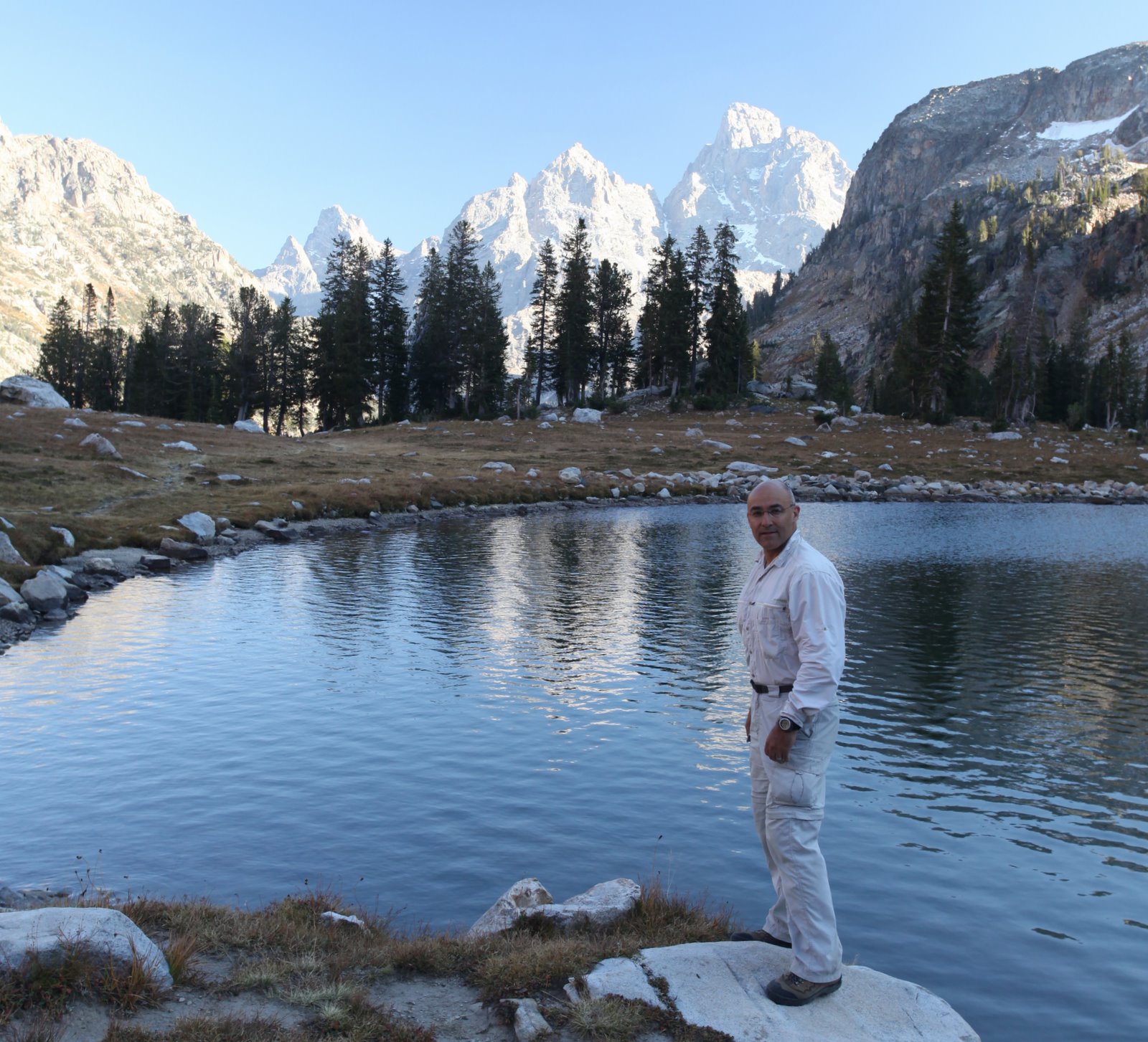 At 4:30 AM, Kyle drove Jeanine and I to the airport where we departed for a 5-night getaway in celebration of our twentieth wedding anniversary. It is also my 52nd birthday. We are traveling to Wyoming where we will enjoy equal measures of backcountry hiking/camping and rustic resort pampering. Pictured here are the Grand Teton’s with Jenny Lake in the foreground taken on final approach to the Jackson Hole airport.