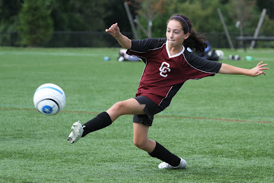 Maya and teammate Emma both seeking to play a ball at midfield. It is not clear to me exactly what was going on but I thought the photo was entertaining enough to warrant posting. Earlier in the day my soccer team lost 0-2 against Medfield, a stronger team which deserved the victory. One of their goals was unearned and we did well to keep the score close. I played almost 75 minutes and for the first time in months was not plagued with knee pain. Their defense was very strong and I was afforded a single shot on net. I had to settle for a left footed, over the shoulder, full volley from outside the box which is to say a very low probability attempt. If we bring our best game on our home field when we play then again we have a chance at beating them.