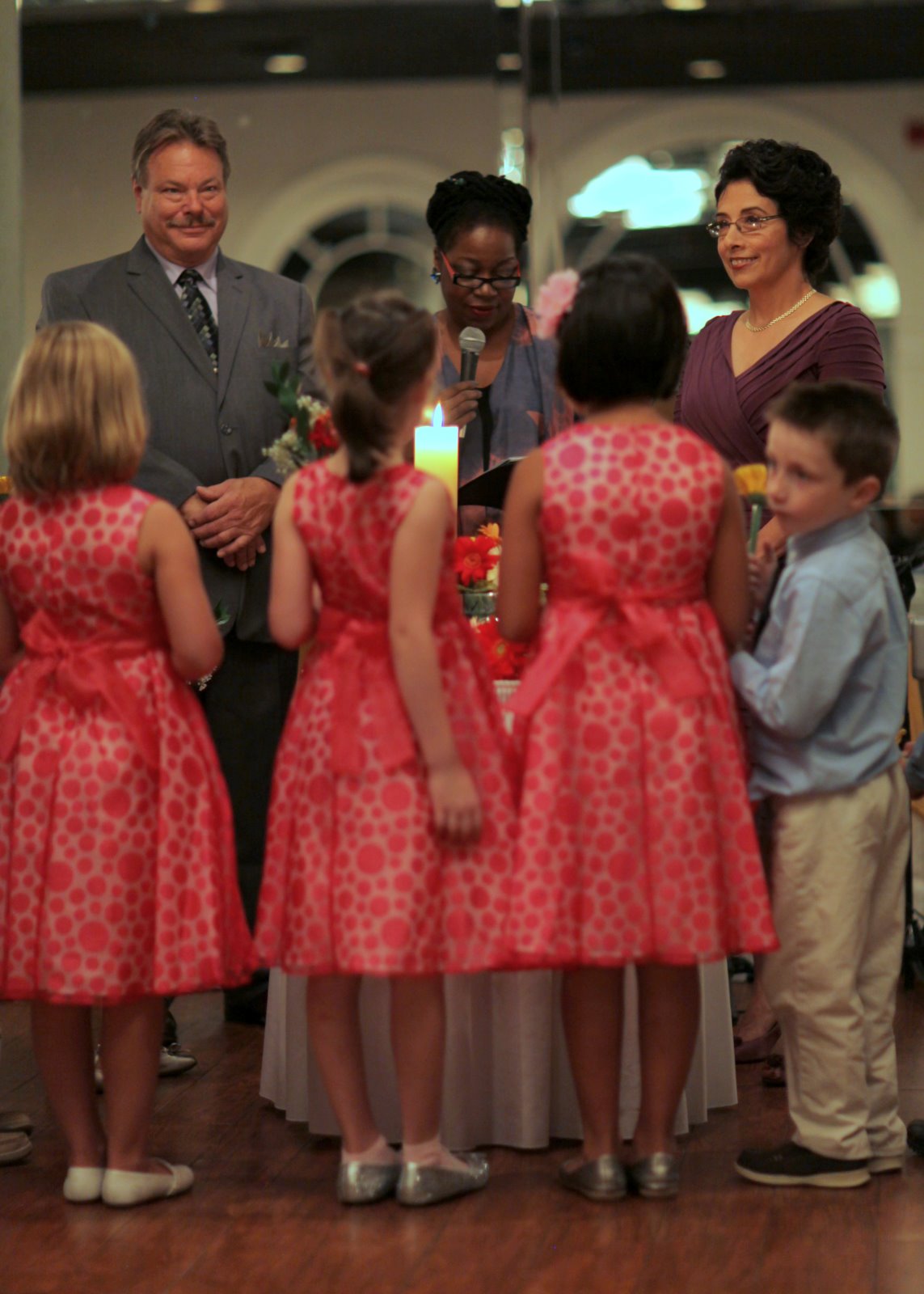 My cousin Anita married Dave, her stepfather’s brother, today. Both are widowers who lost their respective spouses at almost the same time. Much humor was made of their unusual family connection despite their independent lineage. The wedding ceremony and reception were held at a posh hall on Long Island. Anita and Dave were attended by a seemingly endless supply of small related children, only a fraction of which are pictured here.