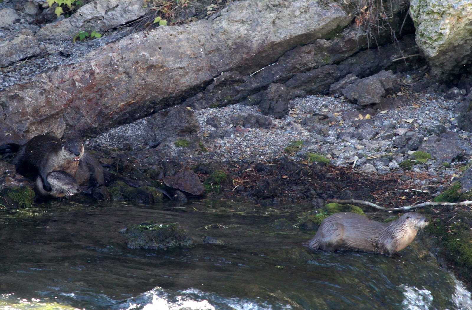 Continuing counter-clockwise around the Grand Loop we come across a group of three River Otters frolicking in the Yellowstone River. A lady who was watching with us said she had been coming to the park for sixty years and never seen otters. We were as thrilled as she was to watch their antics as they wrestled with and tumbled over each other. After about a half an hour they retired to their den and we continued on our circuit.
