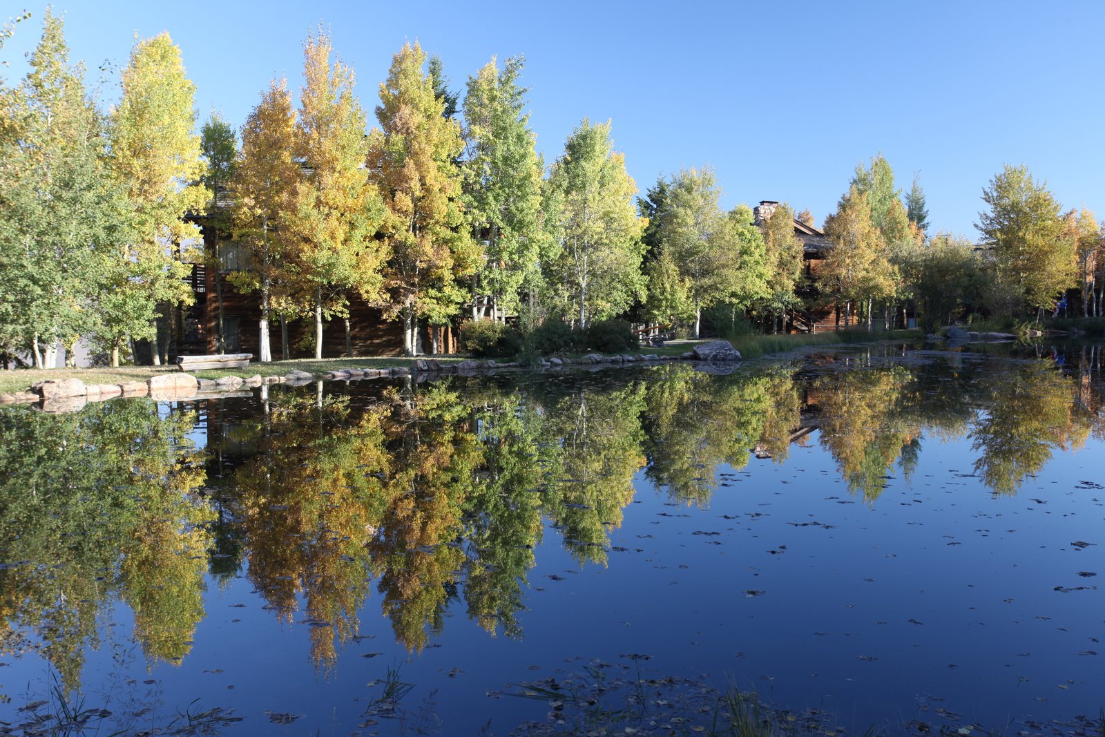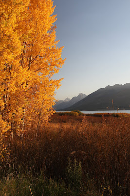 As the sun starts to set we begin our return drive to Jackson Hole and are treated to Aspens along Jackson Lake at peak fall color in golden light. For the next two nights, we will be switching from roughing it to living large. We have reservations at the Spring Creek Ranch, a mountain resort with outstanding views of the Tetons and Jackson Hole.