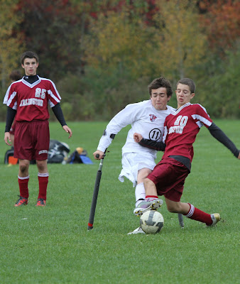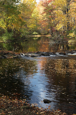 A perfect fall day was enjoyed to the maximum. My soccer game this morning resulted in a 1-1 tie. I picked up our only goal by throwing my body into a rebound and playing it into the net off my abdomen (first time I have ever scored this way). Later in the day Jeanine and I drove through Groton, Pepperell and Hollis where fall color was near peak. Autumn is my favorite season and such excursions nourish my soul.