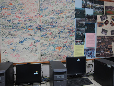 Jeanine and I participated in Back to School Night at the Concord Carlisle High School during which parents attend classes, on an accelerated basis, according to their child’s actual schedule. This provides a great opportunity to meet with teachers and get a sense of what the school day actually looks like for their kids. Jeanine covered Kyle’s schedule and I covered Nicolai’s. We overlapped when one or the other had a study hall.