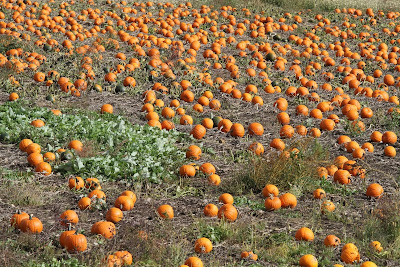 After taking care of several chores around the house I went out in search of fall color. Unfortunately the high winds and heavily overcast skies did not lend themselves to good landscape photography. I did come across a huge patch of pumpkins and was able to find a large boulder from which to photograph them
