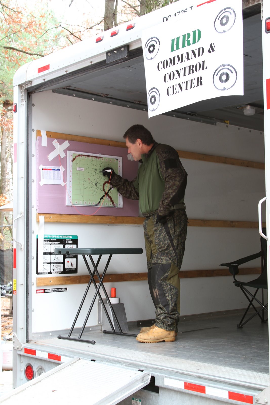 My boss, in our mobile Command & Control Center (I rented a U-Haul truck for $40 bucks).