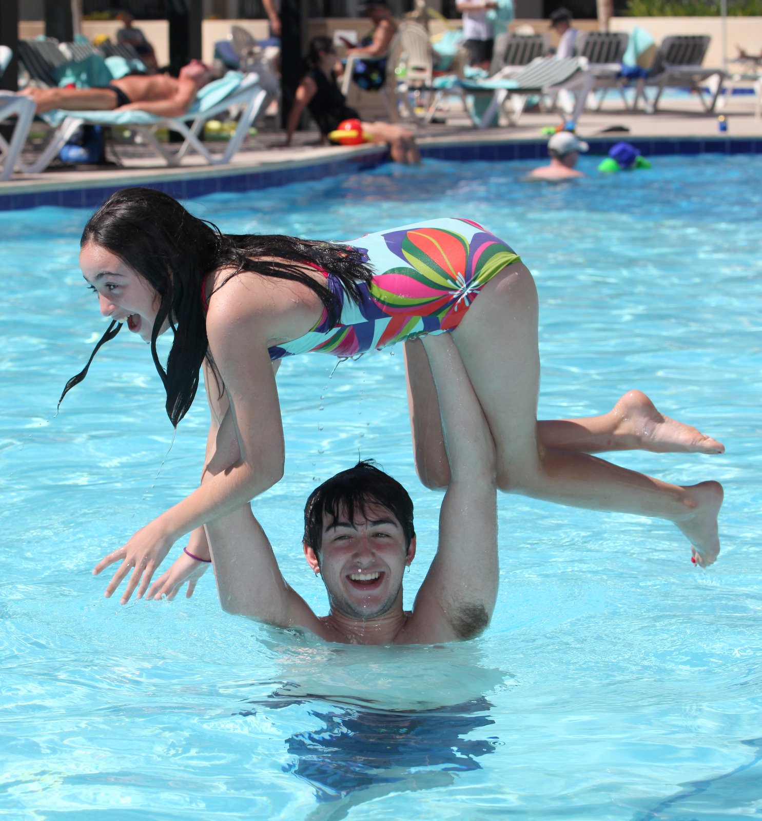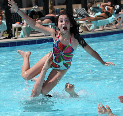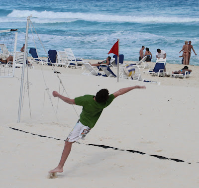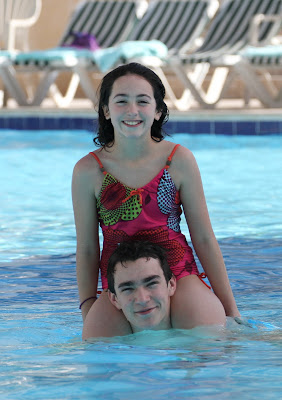 Today was spent poolside and at the beach. Jeanine participated in a water aerobics class while I took advantage of the pool to do some rehab on my shoulder. Kyle made arrangements to get his passport tomorrow and will fly down to join us on Thursday morning. We got a preview of life when he leaves for college and it must be said that we all miss him.