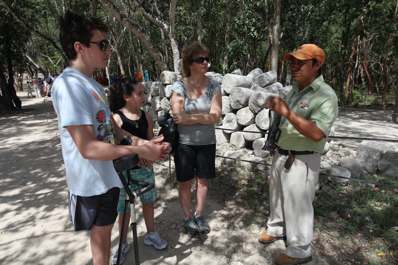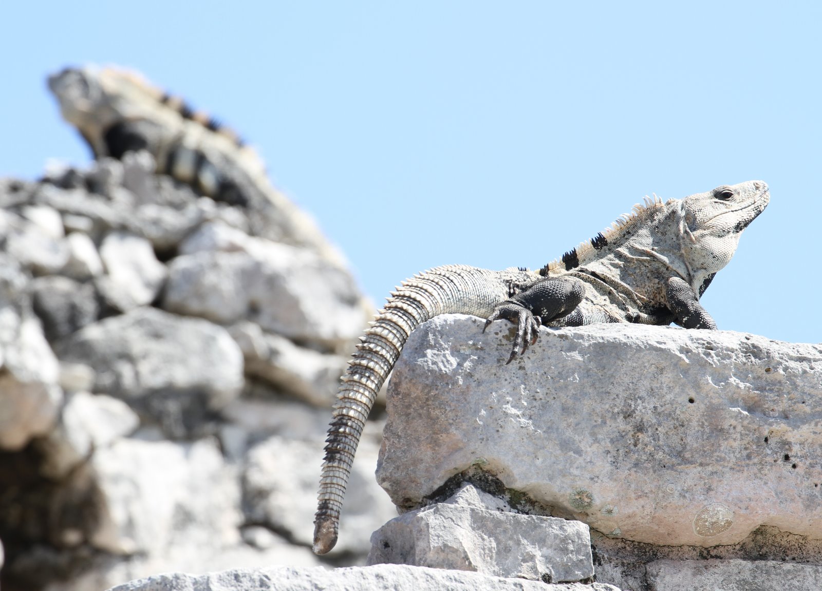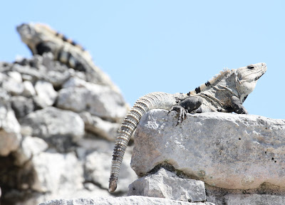 Despite grumblings from the children, we got an early start this morning for the two hour trip to the ruins of Tulum. Unique as the only Mayan city to be built overlooking the ocean, it is protected by a coral reef and cliffs. We were fortunate to get another very knowledgeable and charismatic private guide who helped us understand the history and context of the Mayan civilization. Today iguanas rule the temples that were once occupied by a people who developed a more accurate calendar than the Europeans and developed a hurricane warning siren that still operates today.