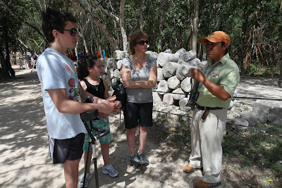 We were rewarded for our early start this morning on our 2.5 hour drive to Chichen Itsa by beating the bus loads of tourists that arrived later in the day. Worth every Peso was the private guide we hired who brought the ancient Mayan ruins to life with his stories and knowledge of the history. Since Jeanine and I last visited, some 15 years ago, park patrons are no longer permitted to climb on the structures. Recent excavations revealed an entirely new layer to the main temple captured in the first photo. For me the observatory, pictured last, was the most fascinating structure, built with such precision and understanding of the celestial calendar it is hard to comprehend. Maya and Nico both enjoyed the ruins far more than I would have predicted (our guide Louis was a major factor, no doubt) and received lessons in price haggling as each purchased souveniers from the local artisans as we departed.