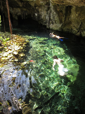 At the request of the children and Jeanine, this vacation was designed to favor relaxation over adventure (a key component of most Calabria travel). Even so, with minor arm twisting, I was able to convince everyone to try cenote snorkling. The Gran Cenote features crystal clear water, underground extensions, and an abyss. It is regarded as the premiere snorkling cenote in the world and because of its great distance from Cancun we had it almost to ourselves. The cool water and Eden like setting was the perfect antidote for the mornings sun drenched excursion.