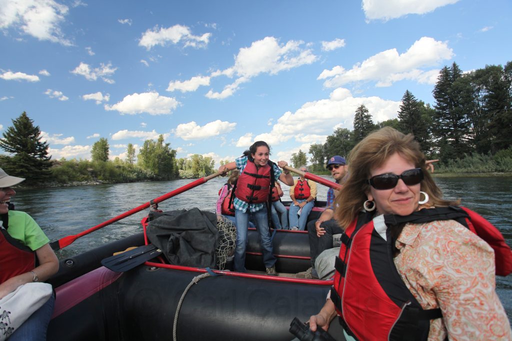 The afternoon is spent floating down the Snake River in an inflatable raft.