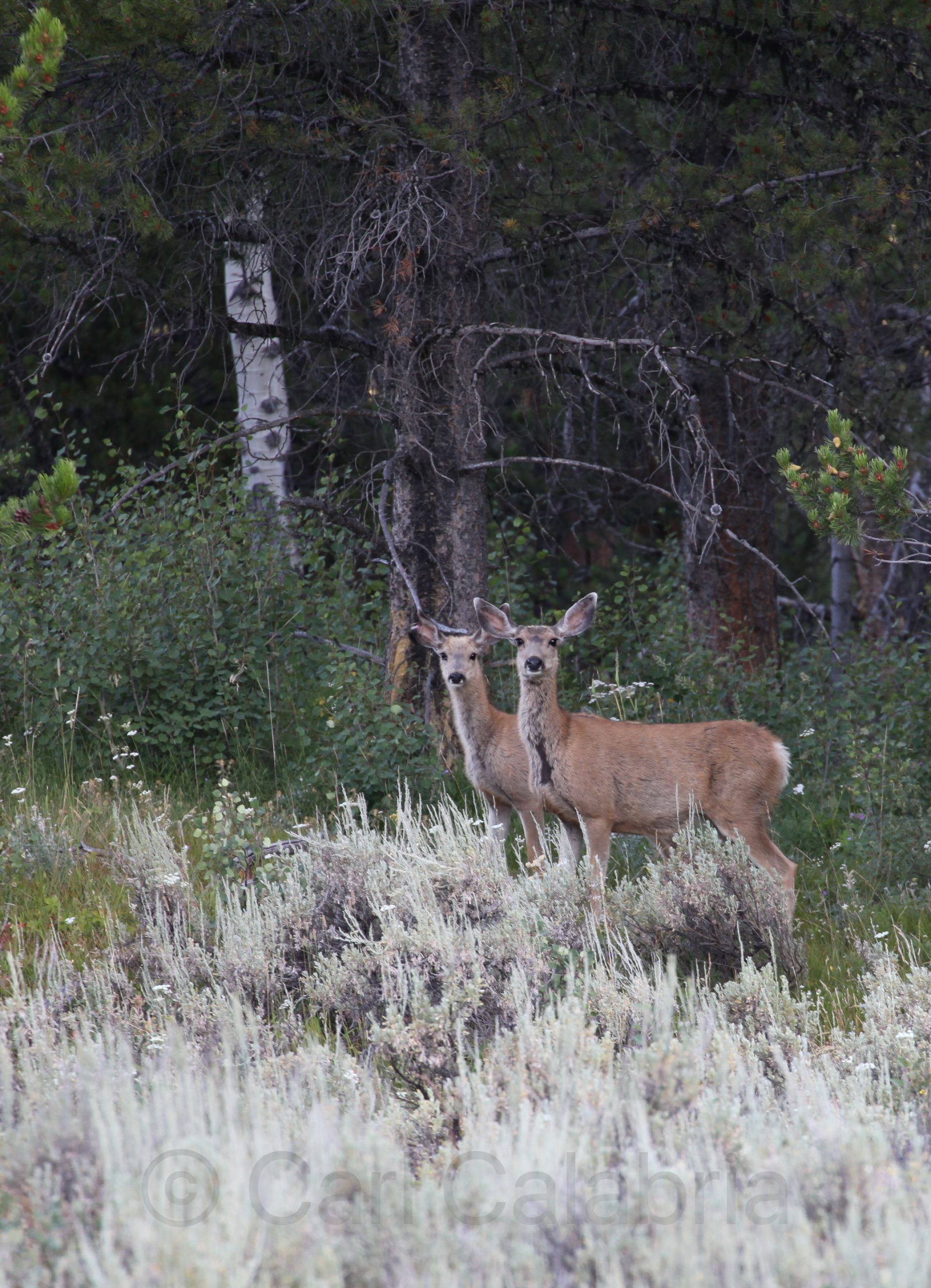 Our Heart Six cabin could not offer a more magnificent view of the Grand Tetons. Each morning I rise before the sun to position myself for the golden hour when the quality of light is optimal for photography. This morning I did a series of landscapes with the Buffalo River in the foreground and the mountains in the background. I also encountered a couple of deer that were kind enough to pose for me.