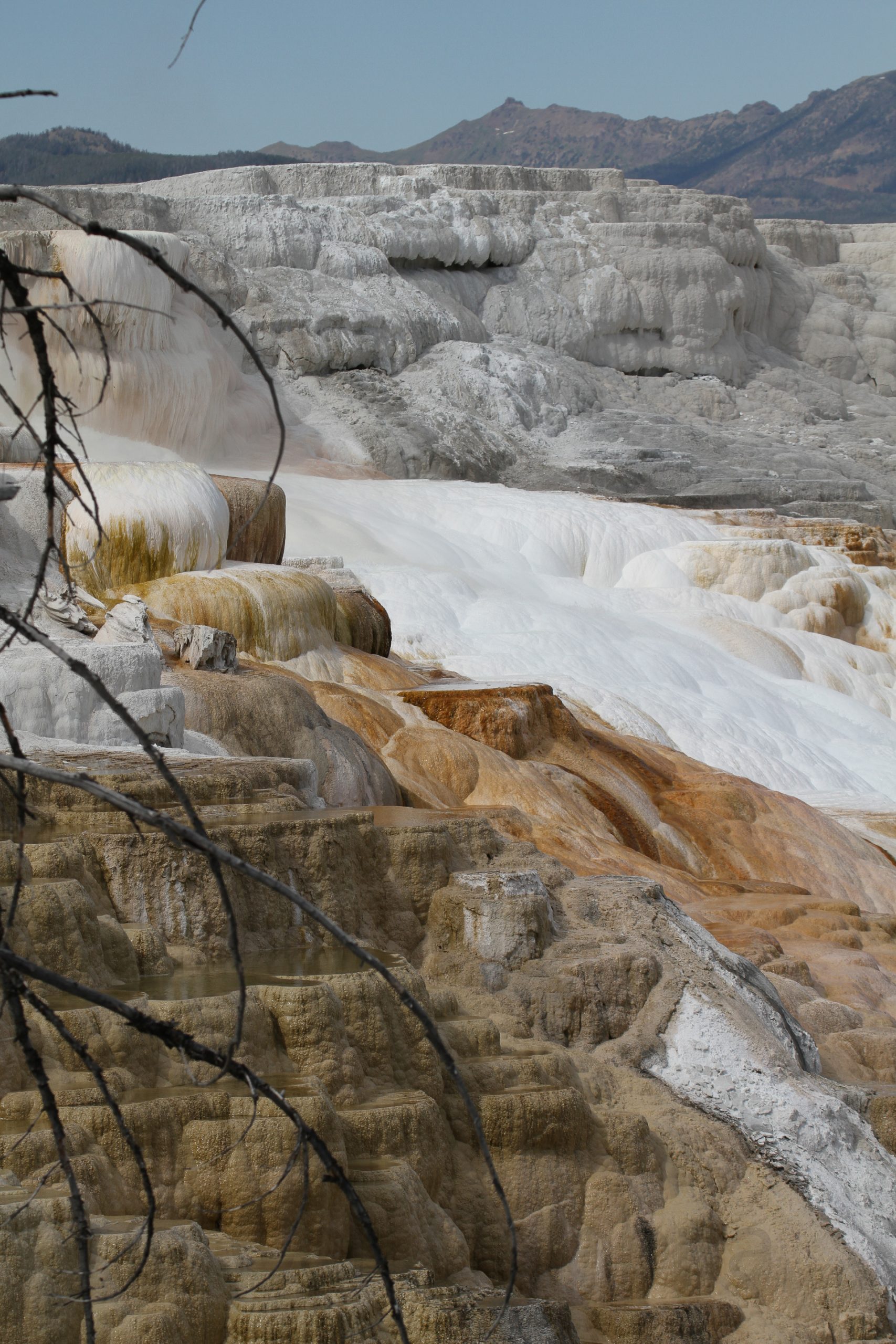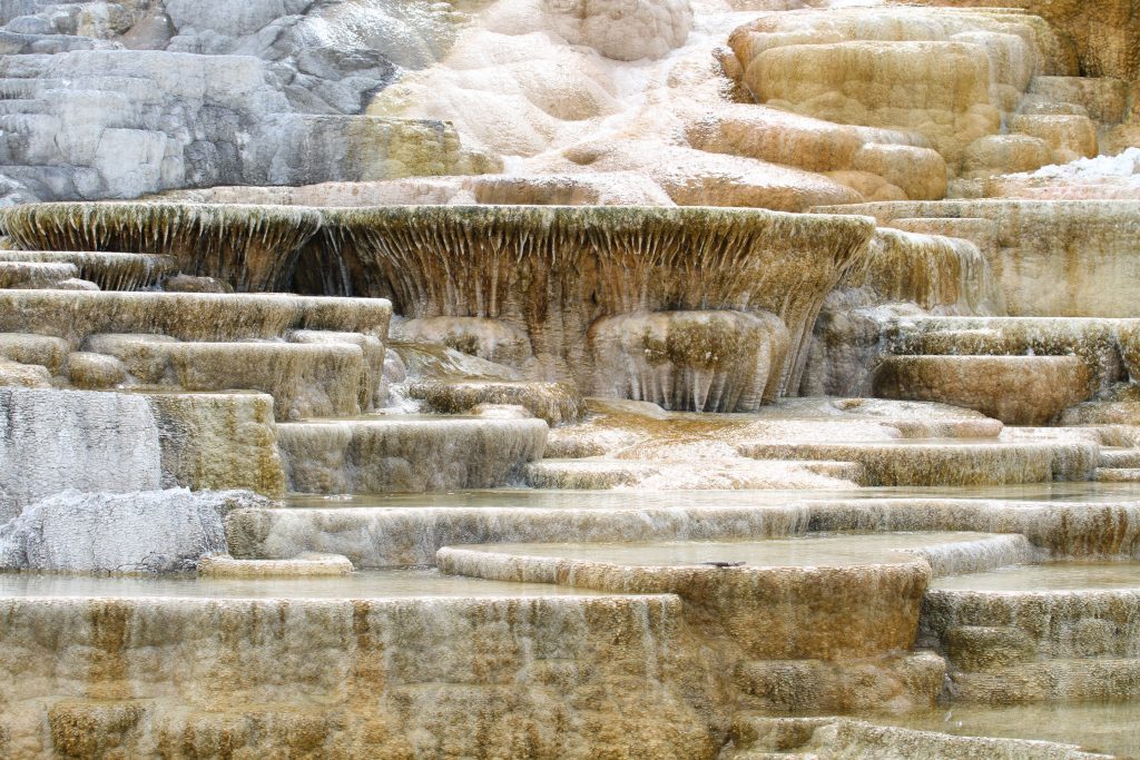 The Lamar Valley is next on our circuit and here we see something like ten herds of bison numbering 2,000 beasts. For the first time I understand why this place is often referred to as the Serengeti of North America. Encountering far less traffic than we expected for this time of year we backtracked the valley and continued on to Mammoth Hot Springs for lunch and some ice cream.