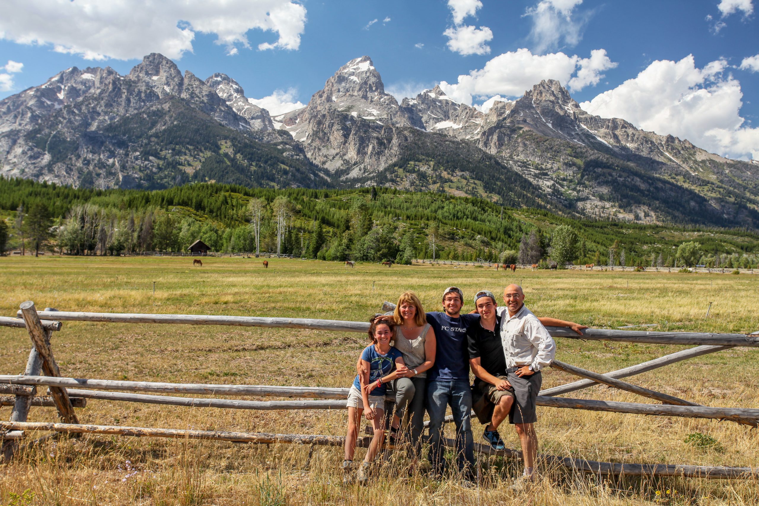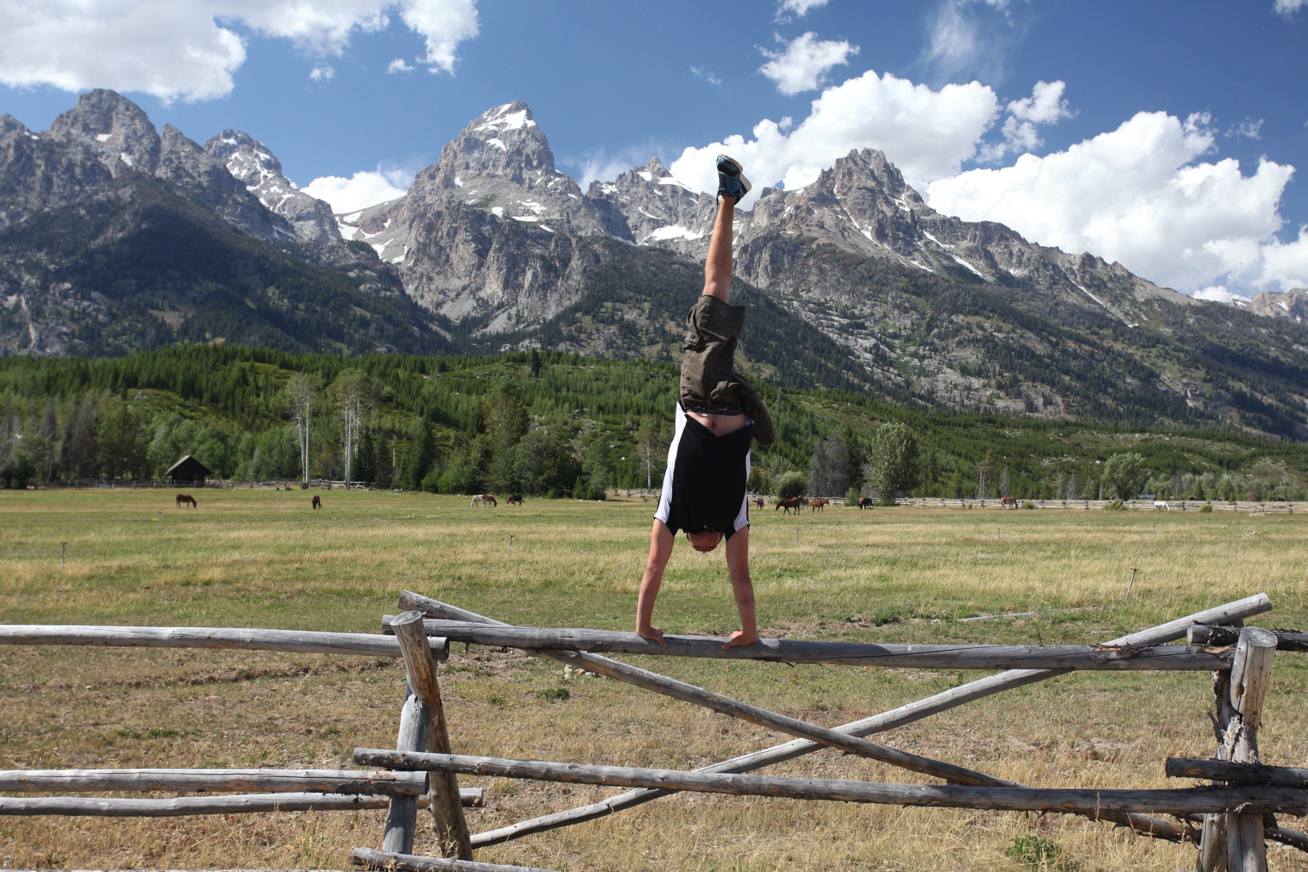 By early afternoon we begin our return to Jackson Hole by way of the Grand Teton National Park. We make several stops along the way including Lake Jackson, Jenny Lake and a horse ranch which we use as a backdrop for another family portrait (and gymnastic apparatus for Nico.