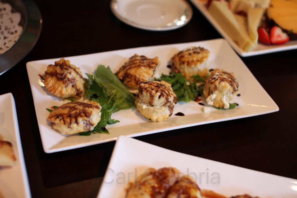 My first day back in the office was actually spent offsite at the Stonehedge Inn at an executive strategy planning meeting. The event commenced with a team building event which involved preparing appetizers that would later be served during a wine tasting. Jeanine would have been very impressed with the results both from a taste and presentation point of view.