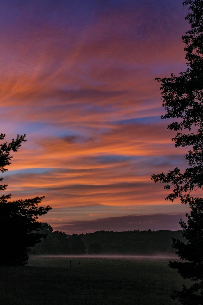 Red sky at night, sailor’s delight, red sky at morning, sailors take warning. This was the scene over our field this morning confirming that Hurricane Irene is on its way. I spent two hours playing soccer and felt great. Unfortunately, our season opener scheduled for tomorrow has been postponed due to the expected storm.