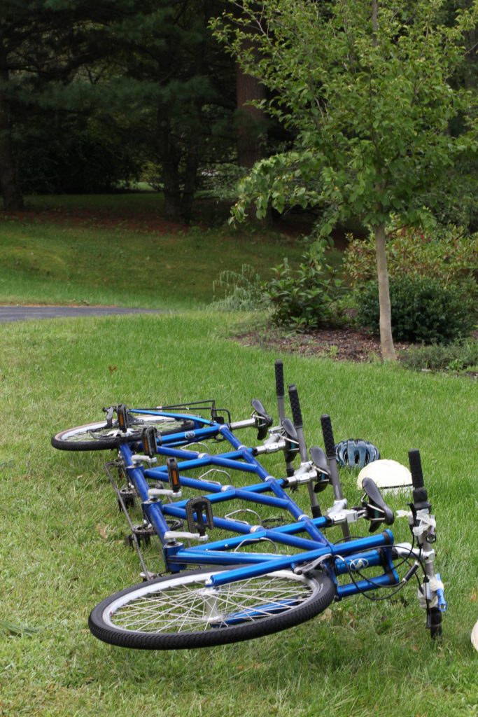 I wonder if the inventor of the cell phone ever imagined it would be used to enable weeding while talking on the phone. This is how I discovered Jeanine when I wandered outside the house this morning to investigate a bicycle built for FOUR that was left here overnight by friends of Nicolai. Apparently several of his friends arrived via this unusual form of conveyance but wisely called parents for a ride home after darkness arrived.
