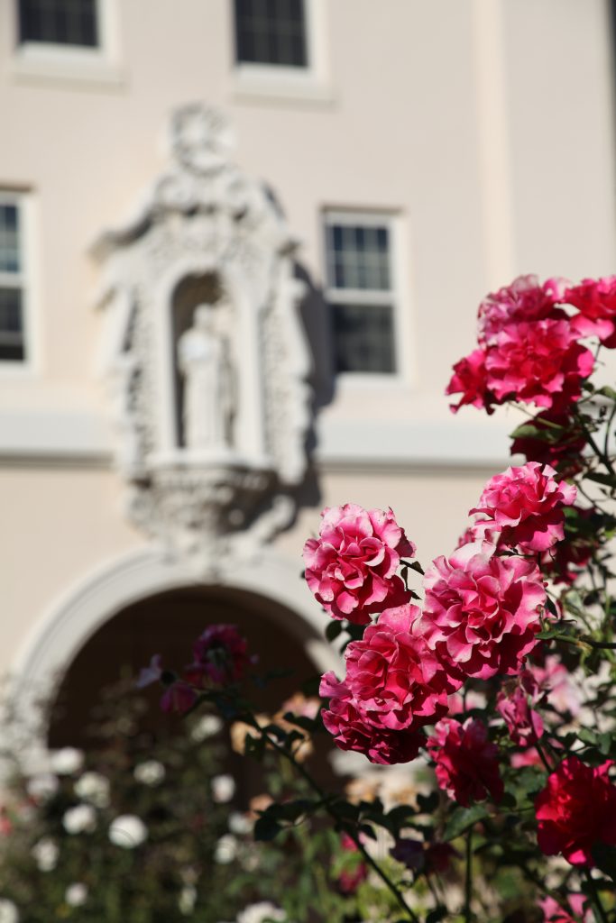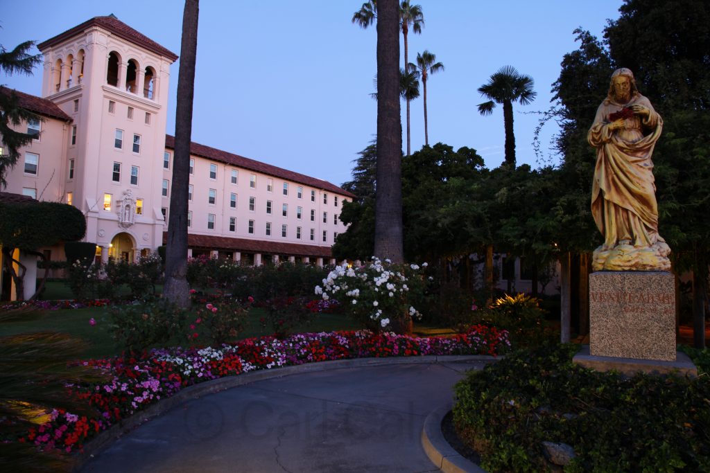 I felt infinitely better this morning after a quick rebound from my severe illness yesterday. Rising several hours before the sun I decided to spend some time on the SCU campus, my first real visit, to familiarize myself with Kyle’s home for the next four years and to take some photos. The architecture and layout reminded me of a smaller and more intimate version of Stanford University. Centered on the historic Mission Santa Clara this private Jesuit school was the first institution of higher learning in California opening its doors in 1851.