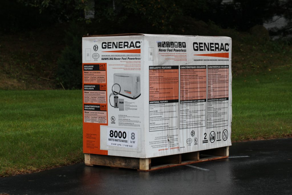 During the 8 years we have lived in Concord we have seldom lost electrical power for more than a few minutes at a time. On only one occasion were we powerless for more than a day. With changing weather patterns seemingly producing more and more extreme weather I decided it was time to invest in a standby generator. An extended power loss during sub freezing temperatures could result in burst water pipes which are very expensive to repair and cause huge collateral damage. The system delivered today is powered by natural gas and is completely automatic. In the event of a power loss it will restore power to essential circuits within the house in a matter of seconds and will run for as long as needed. I will complete most of the installation myself but will probably sub out the gas line connection. Now all I need to do is figure out how I am going to move this 350 pound behemoth to its service position on the southwest corner of the house.