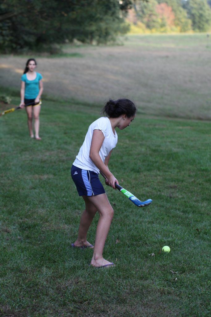 Maya has expressed interest in playing field hockey on her middle school team this year. Here she practices with Sarinnagh in the back yard. Judging by the number of divots in the lawn I would say the girls are wise to be spending time on refining their technique. Maya informed me that it was much harder than it looked and encouraged me to give it a try. Not one to back down from such a challenge I stepped up, took aim, and launched a large section of turf across the yard. My second attempt was more fruitful but Maya had made her point. Her challenge now will be one of scheduling around conflicts with Model UN and Student Government both of which she is interested in pursuing.