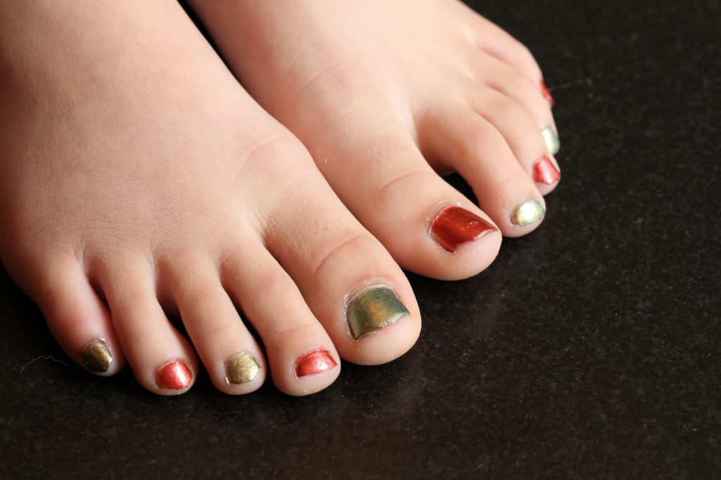 The family officially celebrated my birthday this evening with a feast of my favorite foods. Maya gave me an assortment of three gourmet cheeses which complemented a last of the season tomato, mozzarella and basil bruschetta. This course was followed by baked ziti and my mother’s rice pudding recipe for dessert. The deliciousness of this meal was well worth the dent it put in my diet. I was so engrossed in the food that I did not take any pictures of the birthday boy so this shot of Maya’s decorated toes will have to stand in (pun intended).