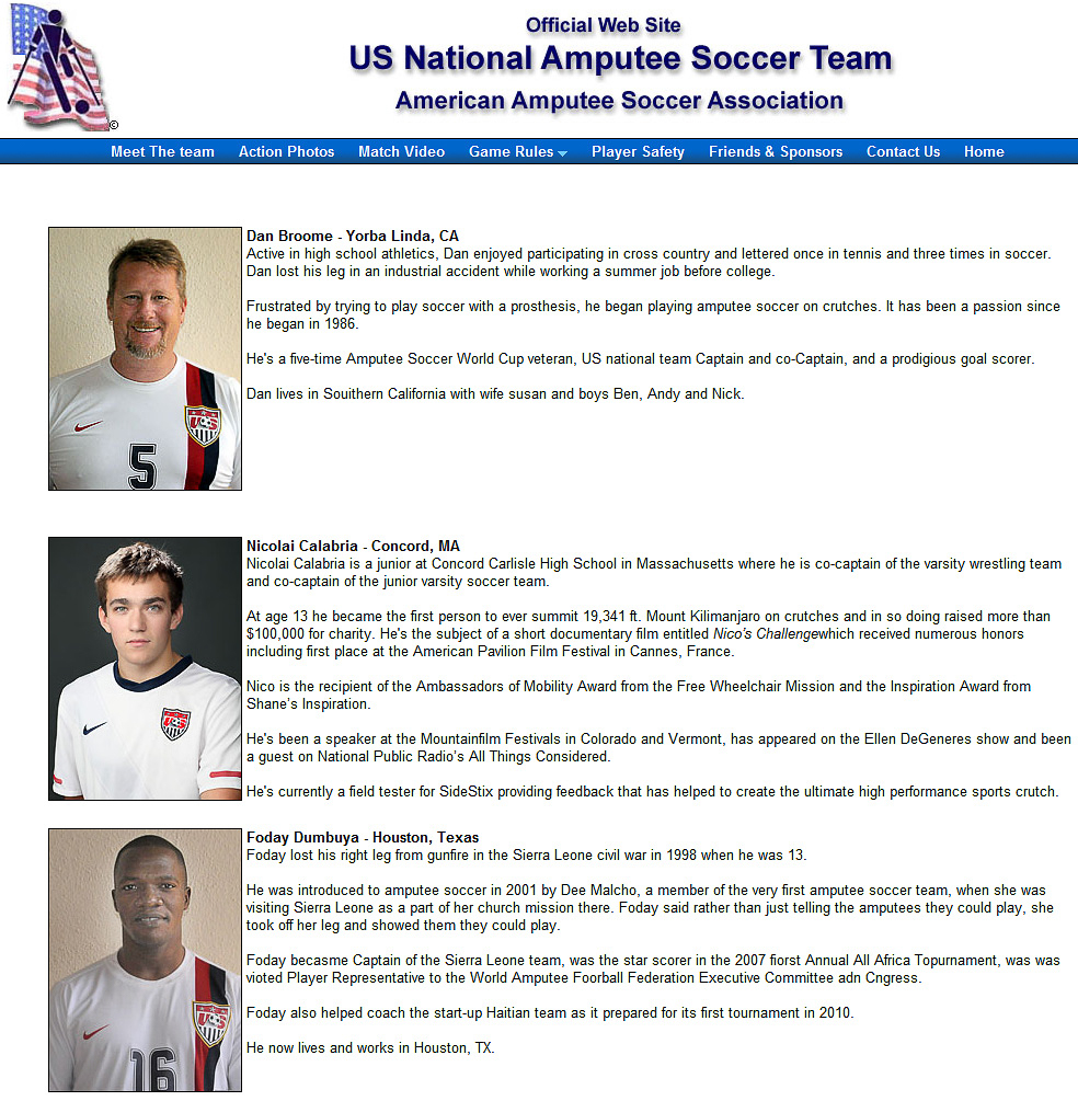 Nicolai’s picture and bio have been added to the US National Amputee Soccer Team website.