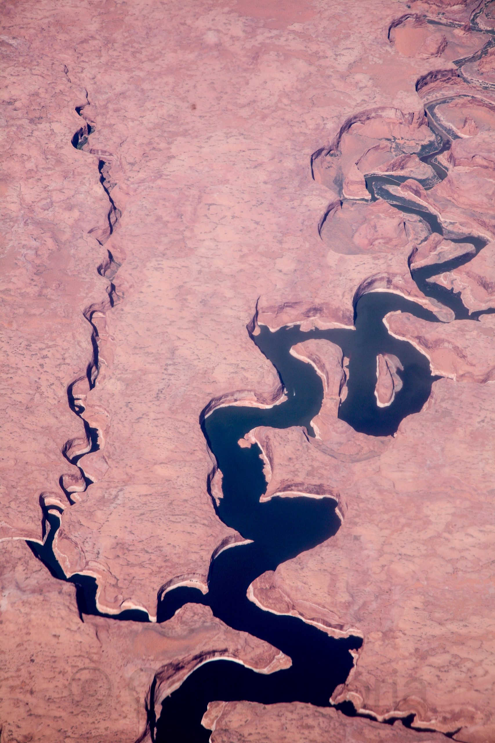 Each morning, I generally spend the hour from 5AM to 6AM at my computer. This is when I usually write my blog entries and process photos that I have taken. For the past few months I have been trimming down and organizing my photo collection so that I can find images with greater ease. This week I have been going through my collection of ariel photographs taken from commercial aircraft. Most are best viewed in large format and do not translate well to the computer screen so I don’t often post them. This one of the Colorado River was taken above the Glen Canyon National Recreation Area in Utah.