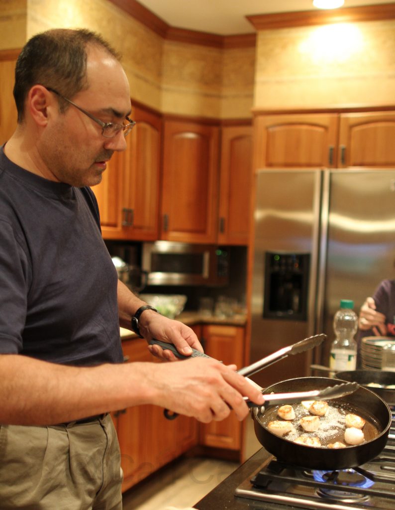 The morning meal was prepared by Nicolai who cooked eggs to order for our expanded household of eleven. For dinner, Mark expertly sauteed scallops to complement a magnificent salad prepared by Jeanine and Marie.