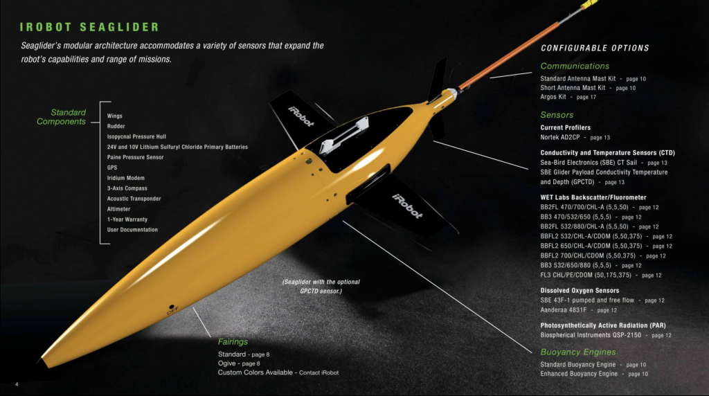 I took the red-eye from California to New York’s JFK and then flew on to Raleigh Durham, NC for meetings with iRobot’s maritime design facility. This team is responsible for our Seaglider, a deep-diving unmanned underwater vehicle capable of missions lasting several months and covering thousands of miles. It can be fitted with various sensor packages that collect data on temperature, salinity, ocean currents, contaminants, etc. When it surfaces, this data is transmitted via satellite to scientists on shore and they can send back new diving missions. I spent the day in meetings before flying back to Boston completing an exhausting 2-day, coast-to-coast-to-coast journey.