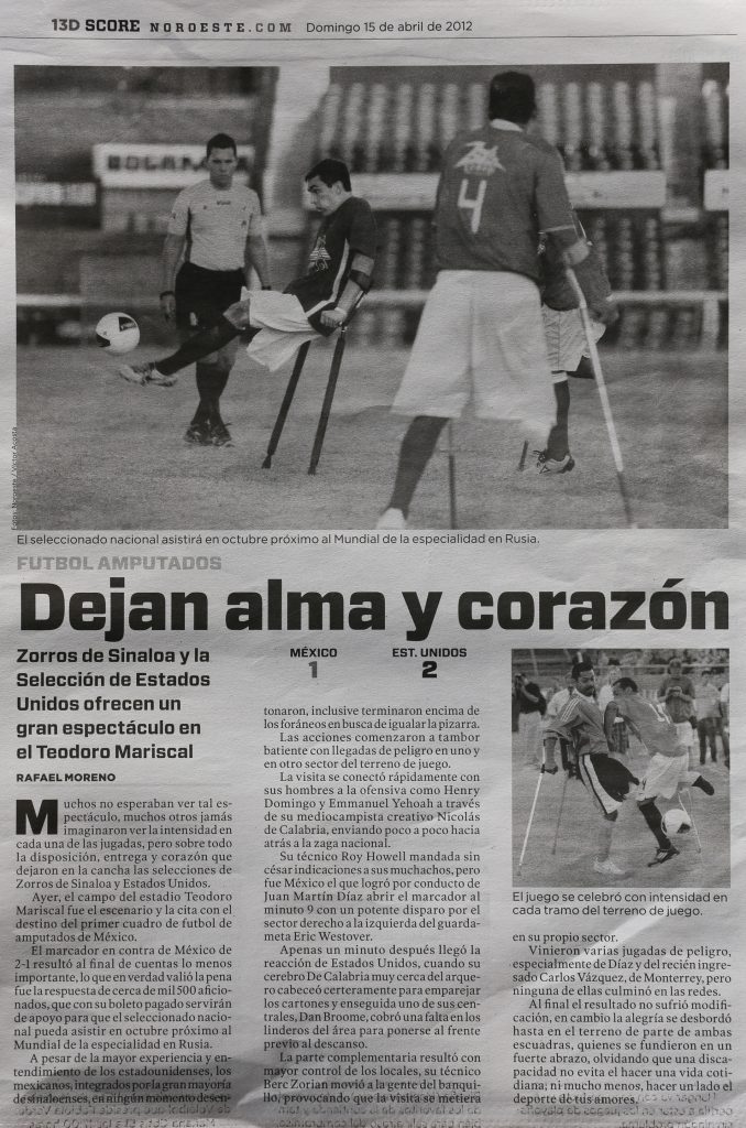 Since he was five years old Nicolai has used forearm crutches to play soccer with able bodied players. When he learned of the American Amputee Soccer Association at age nine he set his sights on playing for the US team one day. Now seventeen, Nicolai has realized that dream. He has become the youngest member of the US National Amputee Soccer team and scored a goal in his debut international match to help secure a 2-1 victory over Mexico.