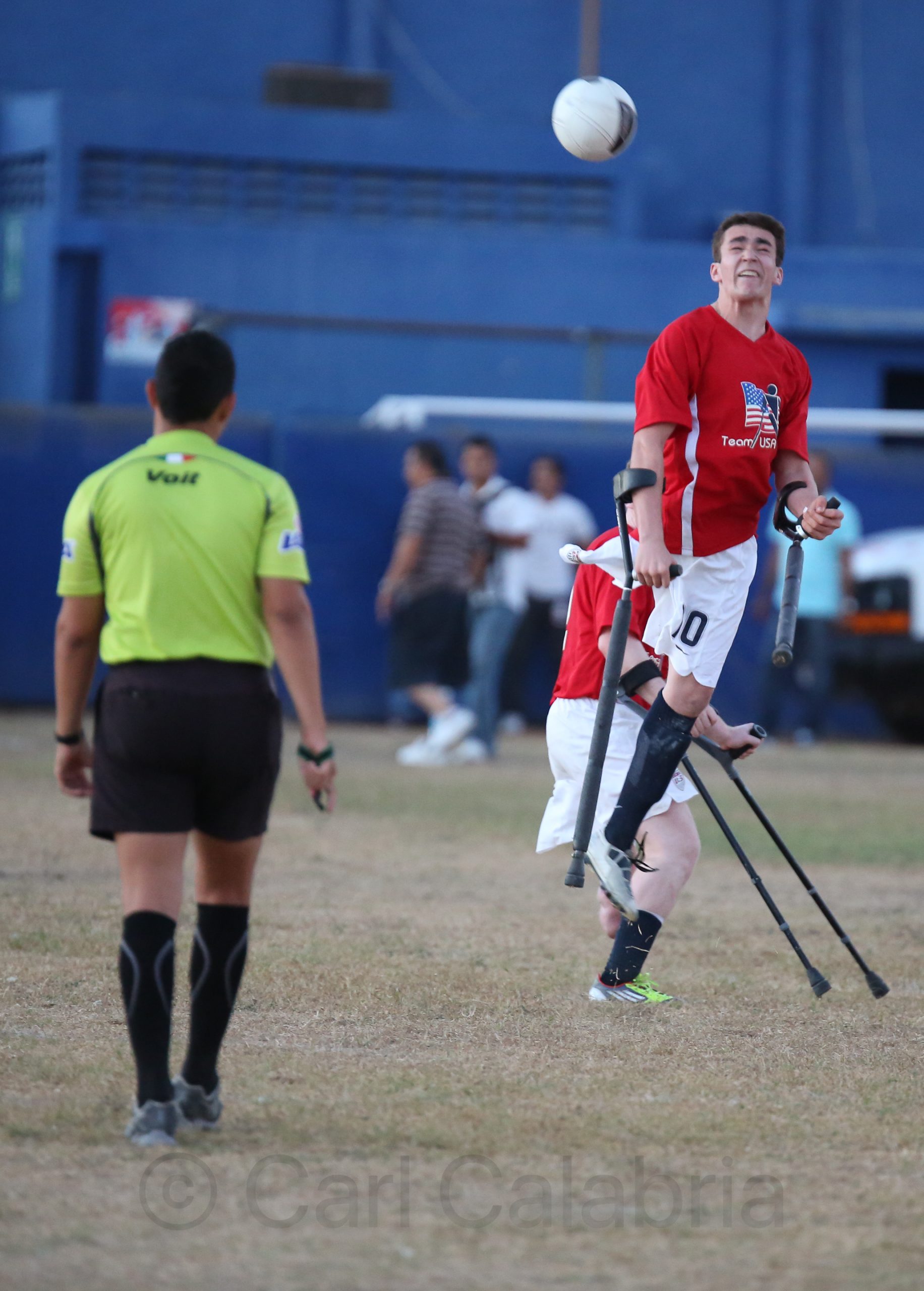 Since he was five years old Nicolai has used forearm crutches to play soccer with able bodied players. When he learned of the American Amputee Soccer Association at age nine he set his sights on playing for the US team one day. Now seventeen, Nicolai has realized that dream. He has become the youngest member of the US National Amputee Soccer team and scored a goal in his debut international match to help secure a 2-1 victory over Mexico.