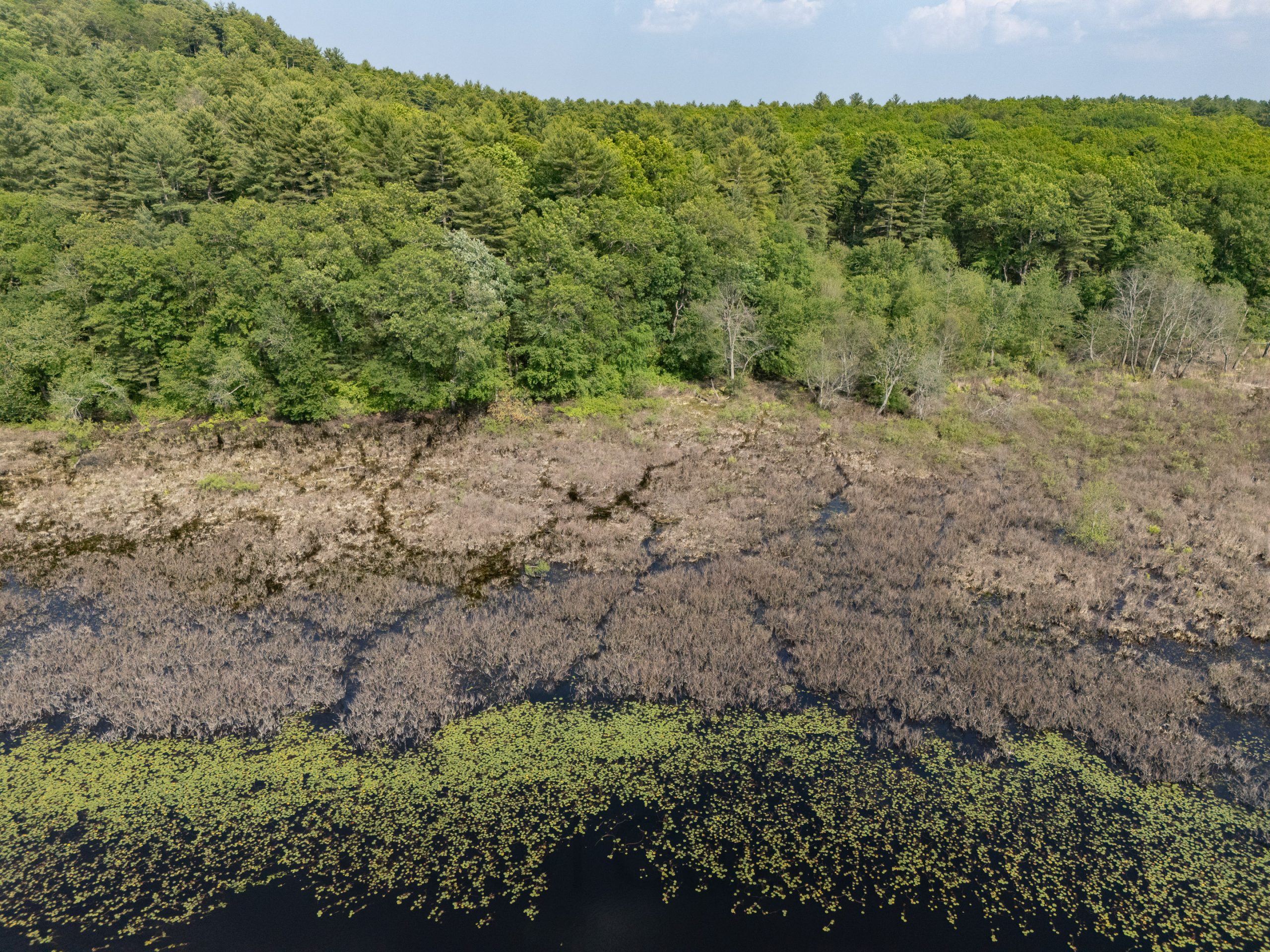 We are very fortunate to be situated on a section of the Sudbury River with a rather diverse shoreline that morphs depending on the water level. Presently, the water is high due to heavy spring rains. The wetlands (brown areas) are fully saturated, and you can see the various canals created by waterfowl, beavers, muskrats, and otters. The tree line serves to provide great background color during the spring and fall, while the water lilies create nice texture in the foreground.
