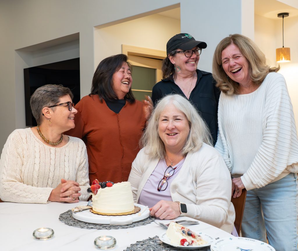 Jeanine hosted a hen party for her friends this evening, one of whom was celebrating her birthday. I was not invited and spent the evening in my office until summoned to take a group photo. Jeanine was laughing uncontrollably, for reasons I hope to discover later, and I was not able to get a “serious” portrait of the group. Having said that, this image captures the mood of the night very accurately.