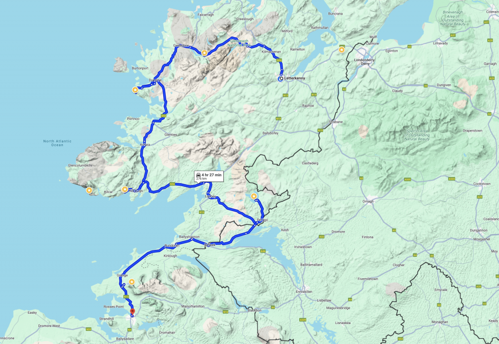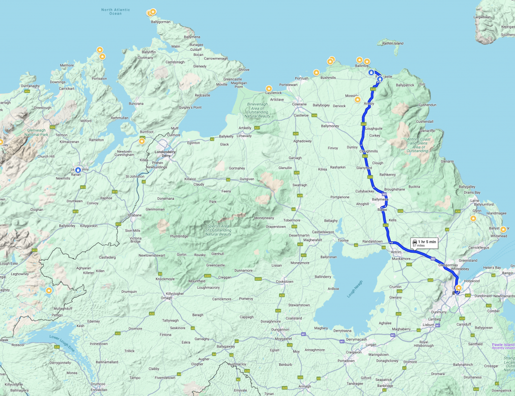 Next month, Jeanine and I will be traveling to Galway, Ireland, to celebrate the marriage of my nephew, Mario. We will fly into Dublin a week before, where we will rent a car and meet up with my brother (Mark) and sister-in-law (Marie) to do a little touring through Northern Ireland. Before such trips, I like to identify places to visit and map out a driving route. Today, I spent some time documenting a tentative plan to share with Mark and Marie for their review.