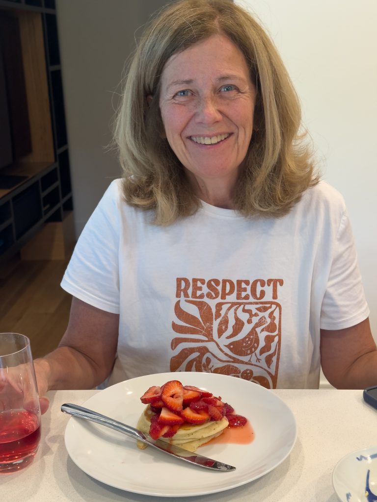This evening, I redeemed myself with a batch that was squarely in the highly edible range, dare I say yummy. I used the internet to research the best box mixes and ordered the winning brand. While they do not compare to Jeanine’s scratch pancakes, I can make them myself with minimal effort. I served them with fresh strawberries and received an approving smile from Jeanine.