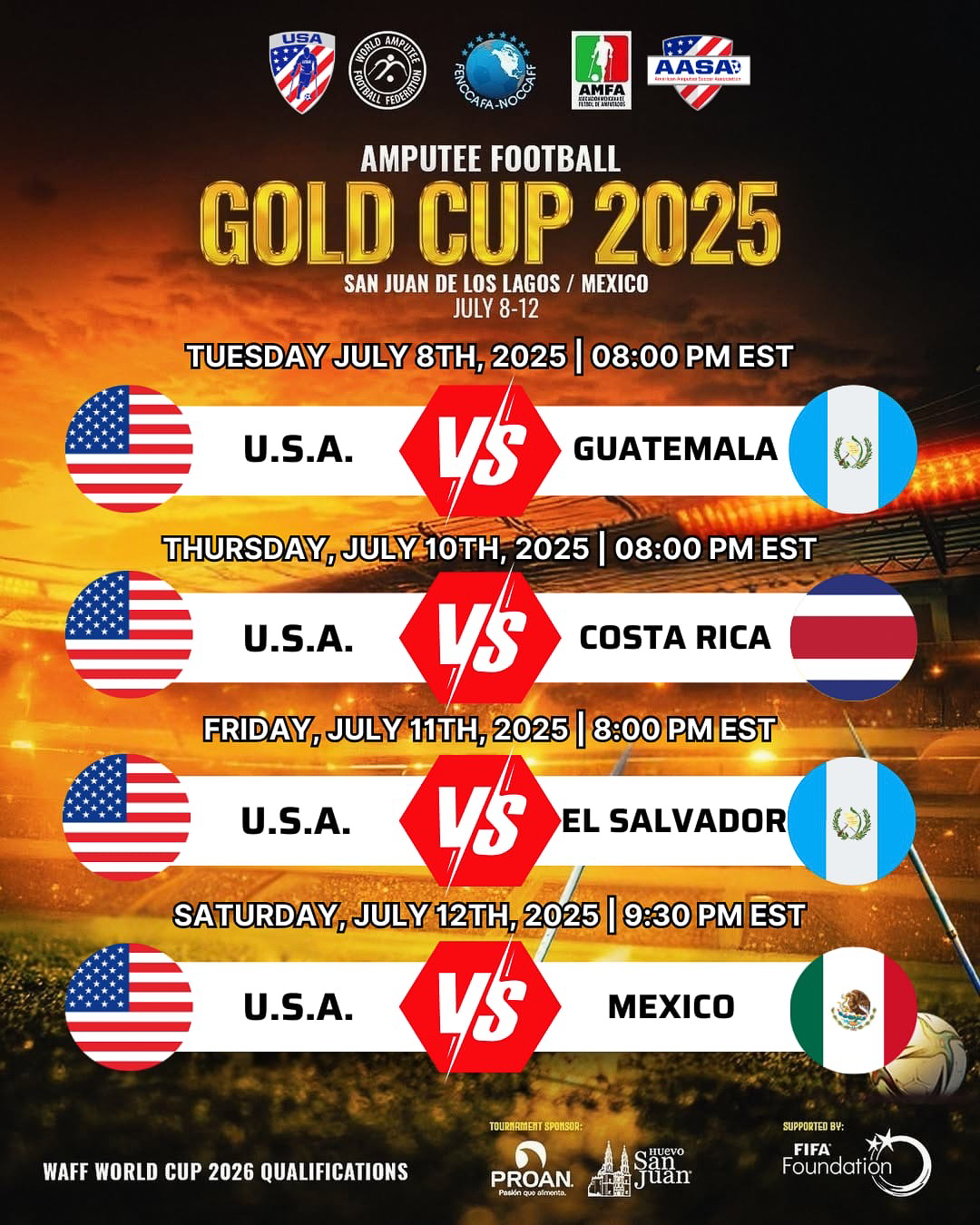 Opening ceremonies (Team USA is introduced at 23:20.) were this evening, and it would be safe to say that the city of San Juan de los Lagos goes above and beyond to honor and welcome the participants and, families, and to create an atmosphere of joy within their community. The schedule for Team USA matches is shown below.