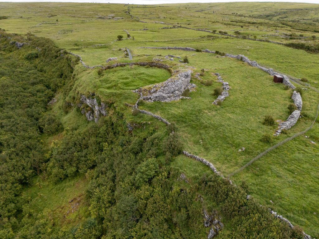 Earlier in the day, we visited the Cahermore ringfort, featuring massive drystone walls up to 9 feet high and thick, with well-fitted limestone blocks and an impressive entrance featuring a complex gateway that could be used to trap would-be invaders.