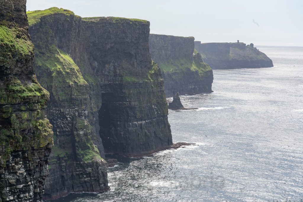Our final destination for the day were the Cliffs of Moher, which proved to be somewhat of a disappointment for me. Since our last visit, 34 years ago, the site has been dramatically developed to include a $32M visitor center and flagstone barriers installed to physically discourage and prevent visitors from getting closer to the edge. It felt like the difference between seeing a declawed tiger in a zoo compared to one roaming in the wild. The sun angle did not favor the traditional view of the cliffs so I focused my photographic attention on a less dramatic but better illuminated section of the coastline.