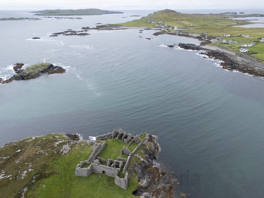 During the Cromwellian conquest of Ireland in the mid-17th century, Inishbofin was the last stronghold of Irish royalist forces. In 1652, it was captured by Cromwell’s troops, who decided to build a new, more formidable fortification to control the harbour and suppress opposition. The result was the star-shaped stone fort—now locally called Cromwell’s Barracks—which still dominates the tidal island today.
