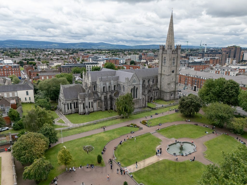 Afterwards, and in between ice cream breaks, we visited the nearby St. Patrick’s Cathedral, the largest church in Ireland and a prime example of Gothic architecture. Its history stretches back over 800 years, built primarily between 1220 and 1260 under Archbishop John Comyn, on a site believed to be where St. Patrick himself baptized converts in the 5th century. The cathedral was constructed in a cruciform (cross-shaped) layout typical of Gothic design, featuring pointed arches, ribbed vaults, flying buttresses, and an elaborate 140-foot tall bell tower.