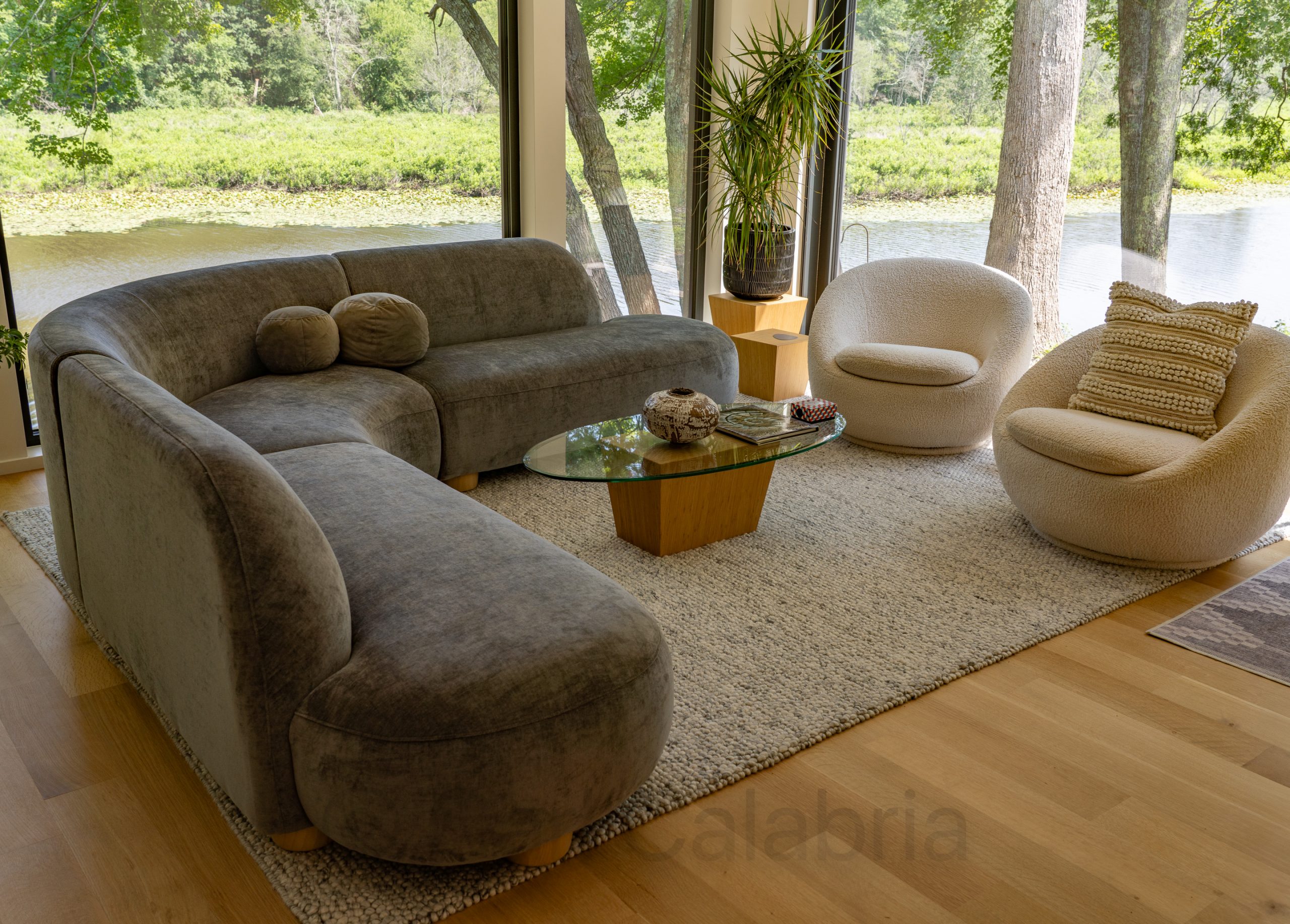 I challenge observant viewers to identify the main difference between these two scenes. The novice will identify differences in pillow placement and chair orientation. Middle-of-the-road detectives might observe the addition of a wooden box on top of the coffee table. Only a true Sherlock-class sleuth will notice that the couches are different, and only by close examination of the seams.