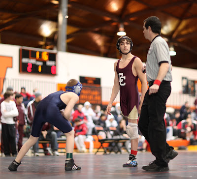 Nicolai won three matches today to win first place in the DCL (Dual County League) Tournament in the Junior Varsity 100 pound division. He wrestled with great composure and strength beating every opponent by a margin of 10 points or more.