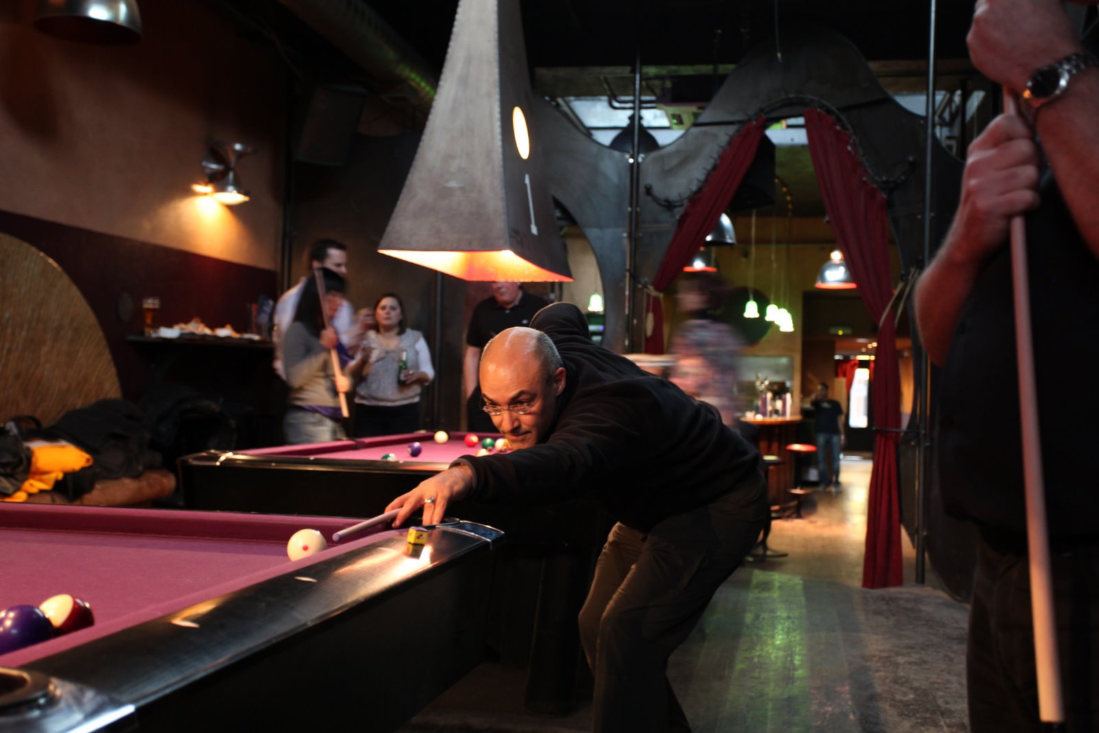 The timing of my trip to Europe was designed to overlap with the UK office holiday party. The celebration started with a pool tournament in which US/Pan European bragging rights were at stake. I made it to the semi finals but failed to sink the 8 ball for the match when I had the chance. The Canadian who beat me went on to win, securing the victory for North America. The party then moved to a large club where everyone enjoyed a fine 3 course dinner followed by much drinking and dancing. Please try to ignore the silly hats.
