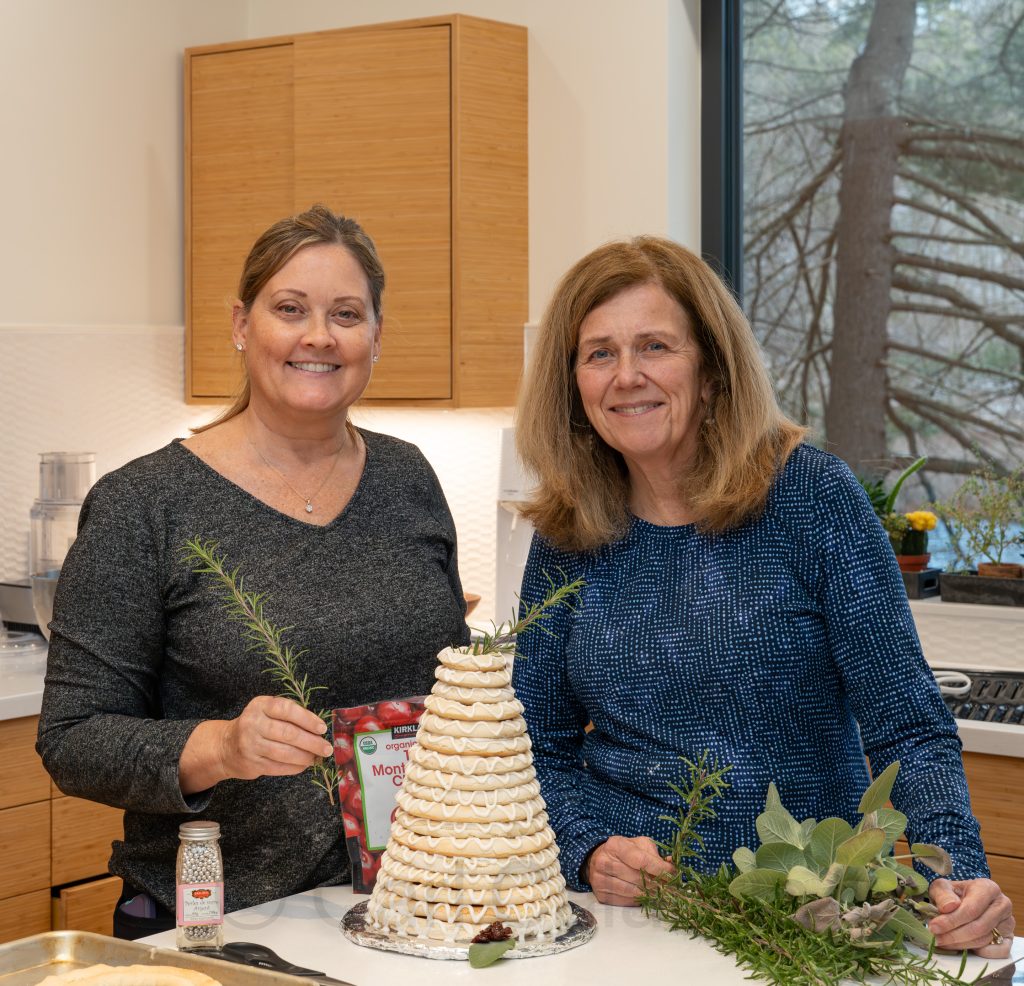 Jeanine had a play date with her friend Barbara today. The two could be heard laughing in the kitchen while baking an exotic holiday treat. The Kransekake (Norwegian) or Kransekage (Danish) is a traditional Scandinavian “wreath cake” or “tower cake” consisting of a stack of eighteen or more concentric almond cookie rings.
