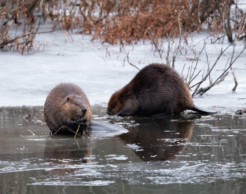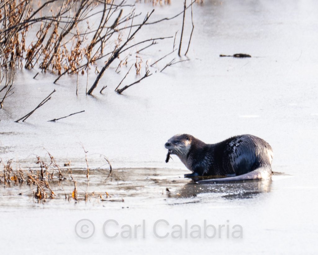 With the river partially frozen, we have had several furry visitors over the last few days. We see beavers all the time, but rarely out of the water. This pair spent at least an hour enjoying their meal and grooming before slipping back into the water. River otters, on the other hand, are relatively rare to see. We saw this one yesterday, and he returned today for a little fishing.
