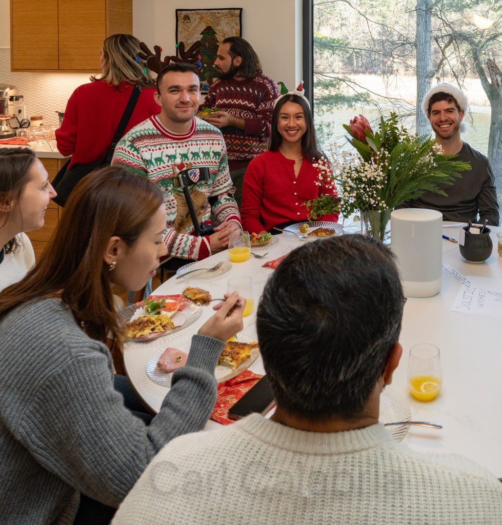 For the second consecutive year, our kids invited their friends over for a holiday brunch. This year we had 38 guests, including a few parents who were also friends of ours. The multigenerational party lasted from noon until sunset with a menu that included overnight brioche praline French toast, mini frittata muffins, a spiral ham, fresh fruit, and an array of desserts.
