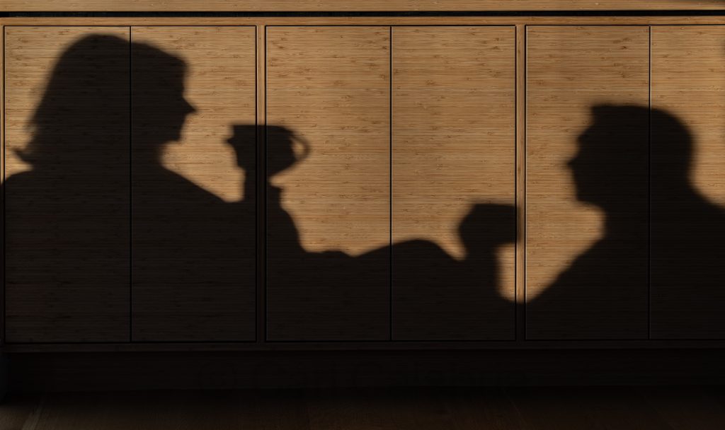 Despite being short on proper beds, we were thrilled that the kids chose to spend another night with us. It was late morning before everyone rolled out of bed, and coffee was the first order of business. When I noticed Jeanine’s shadow on the cabinets in our great room, I encouraged Nico to lean into the scene and captured this photo of them. I really like the way it turned out.