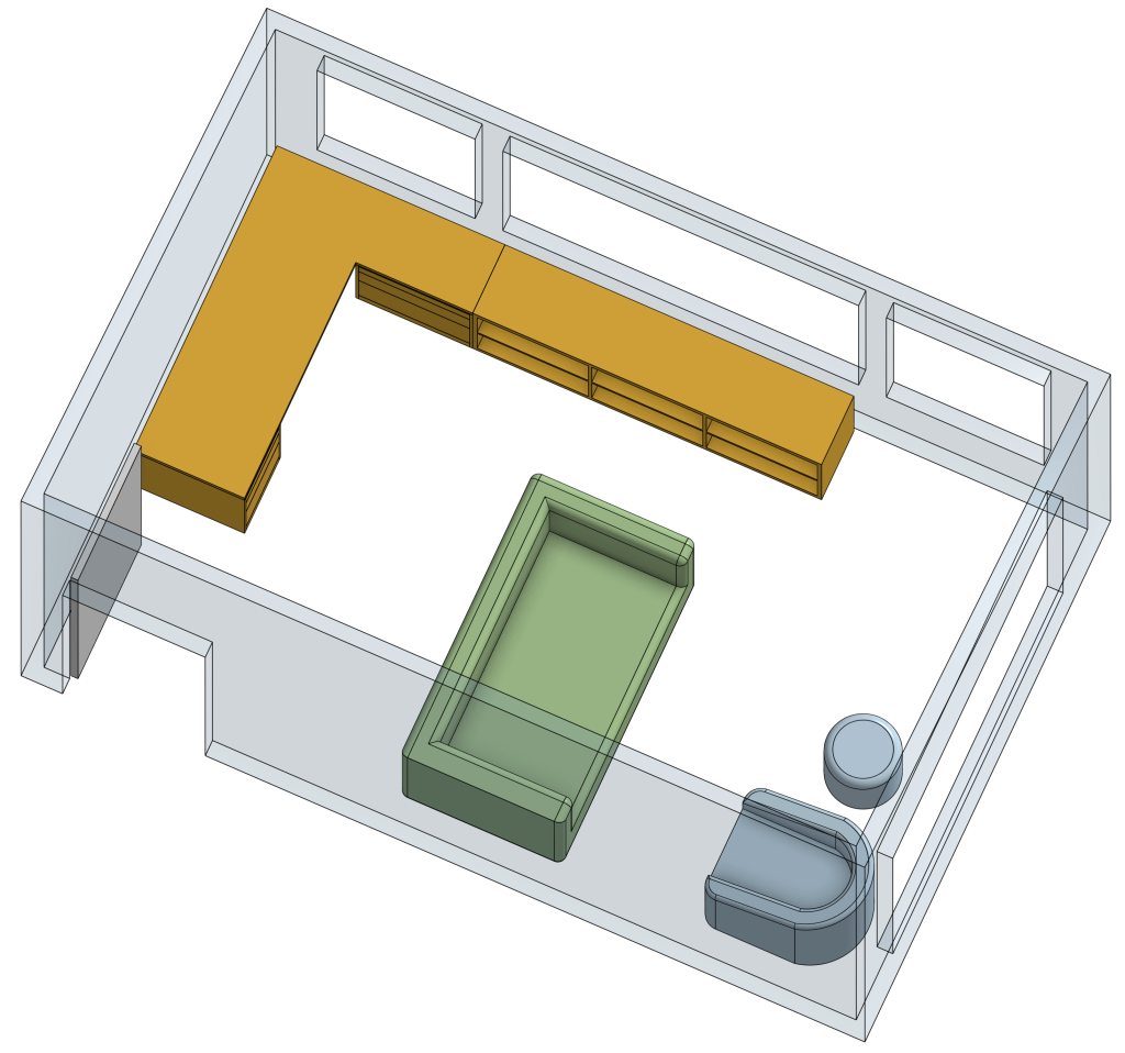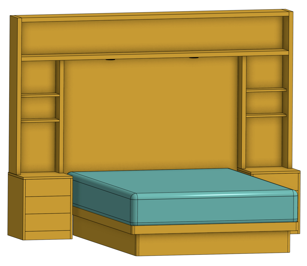 I spent the better part of the day finishing my plans for the headboard that will complement the platform bed I recently completed. The design will include integrated 3-drawer nightstands, built-in reading lights, and shelving intended for the display of framed photographs. The shelving unit will sit atop the nightstands and flush to the wall, weighing slightly more than 200 pounds.